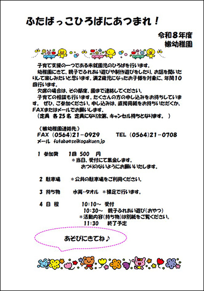 令和8年度 ふたばっこひろばが始まります♪