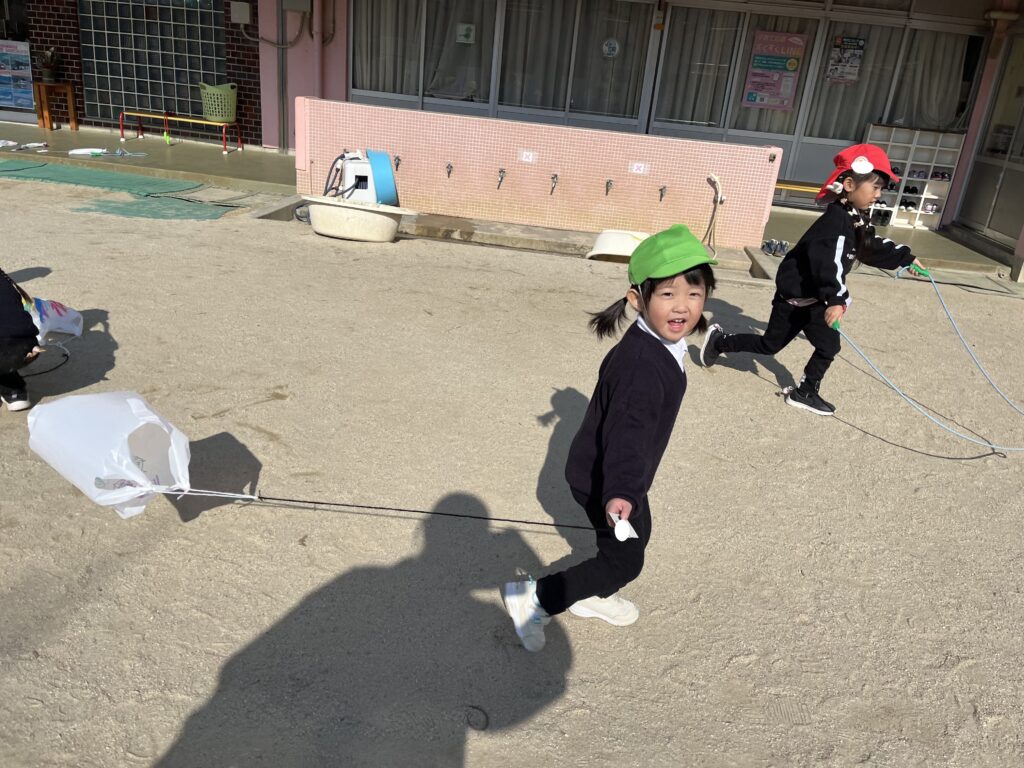風を受けて揚げる凧に大喜び。体を動かす気持ち良さを感じています!
