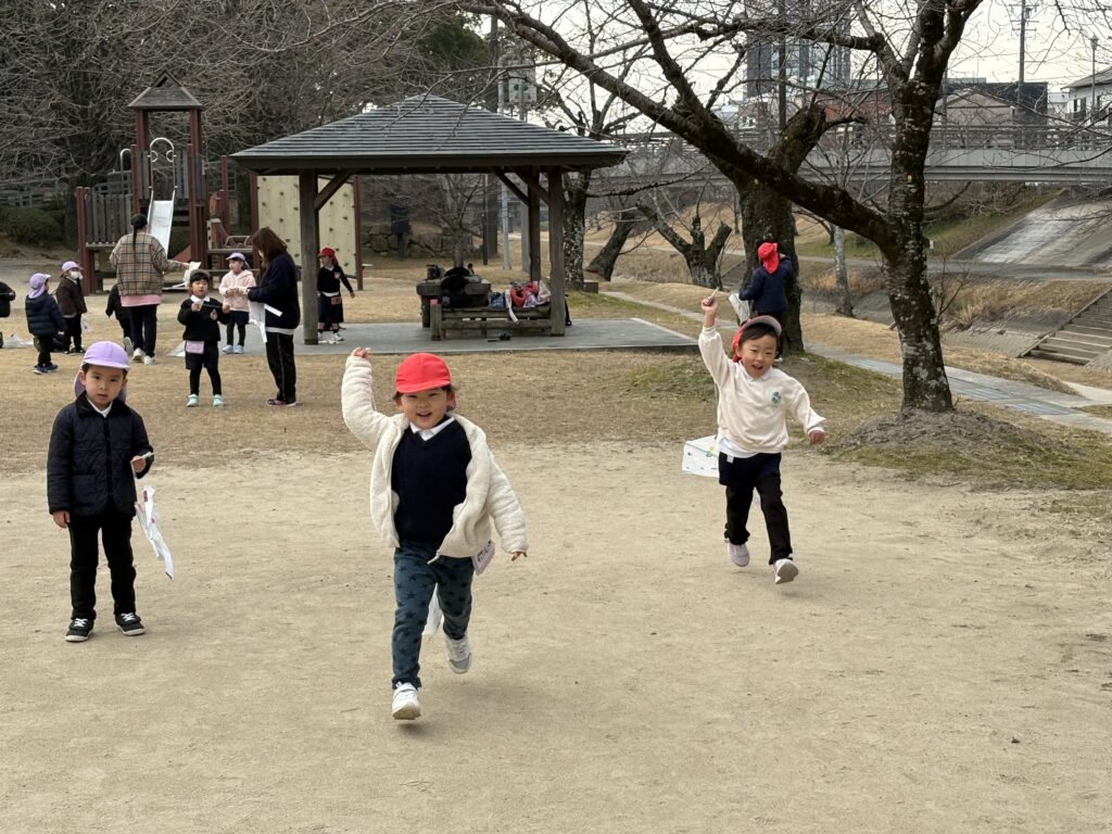 広い公園で力いっぱい走ってニコニコ笑顔の子どもたちでした(^▽^)/
