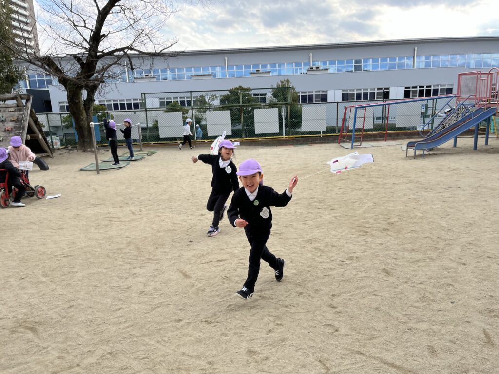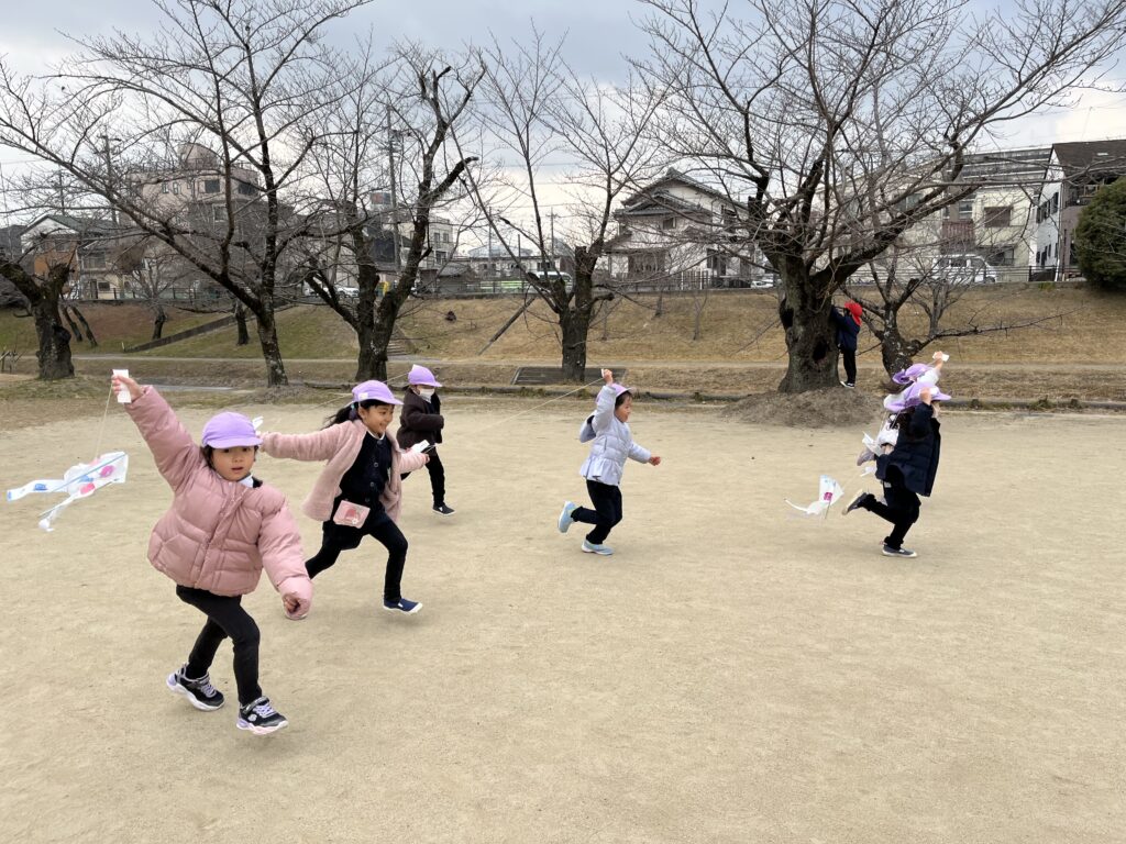 公園についてすぐに凧揚げをしました(^^♪風が吹いていて凧がよく揚がりました♡