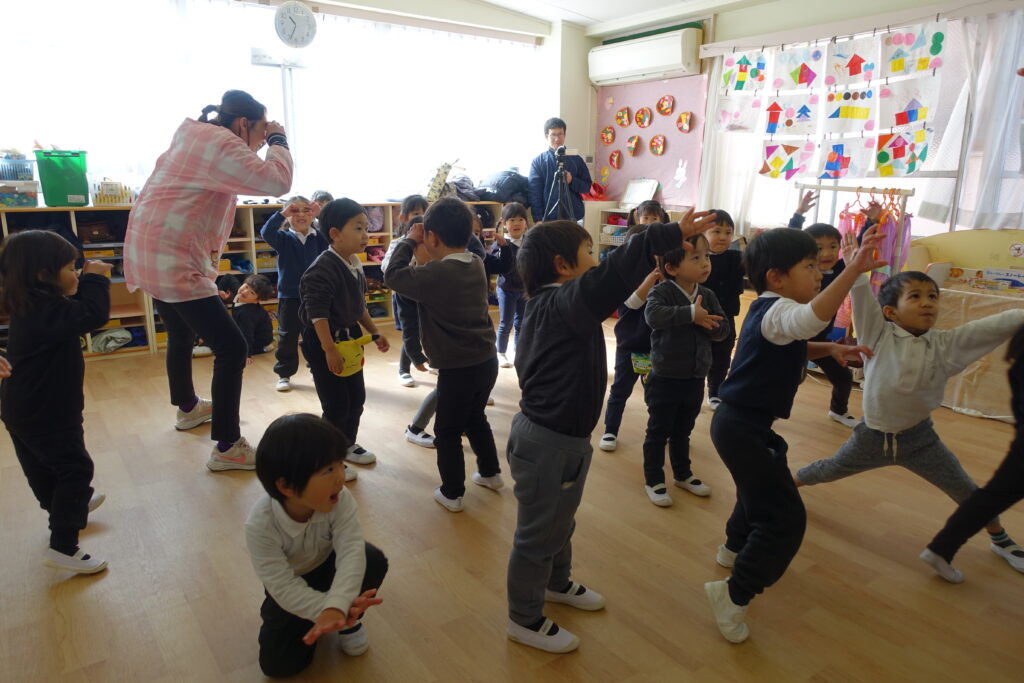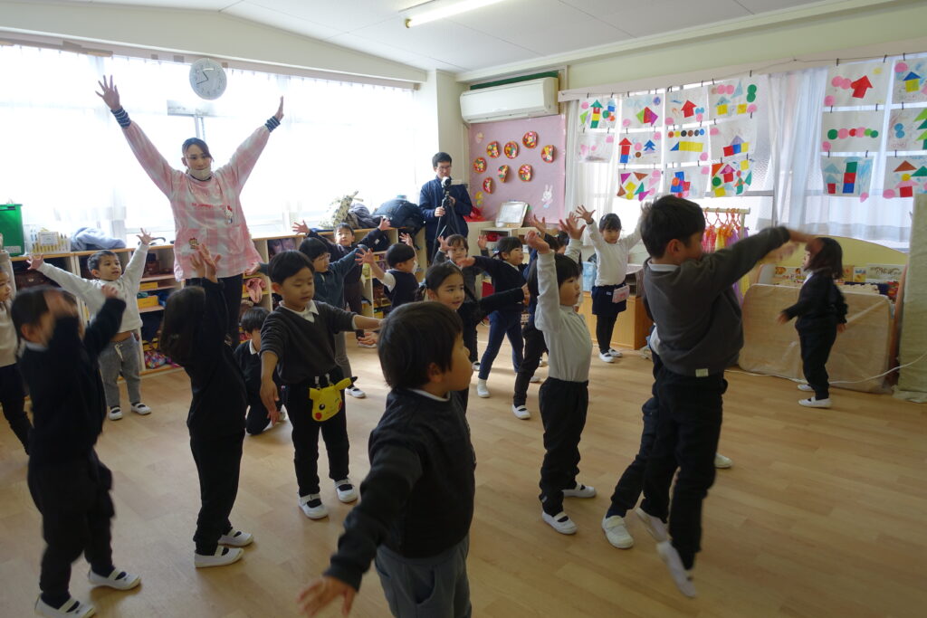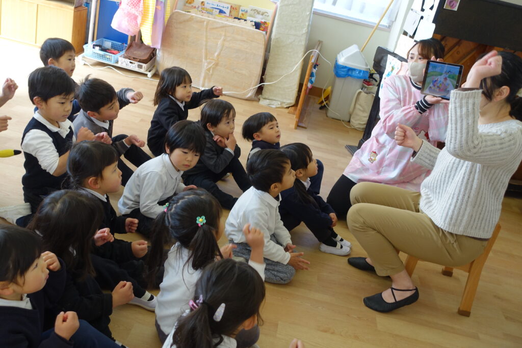 『おもちゃのチャチャチャ』に合わせて手拍子をしたり、動画や歌に合わせて身体を動かして遊んだりしました♬