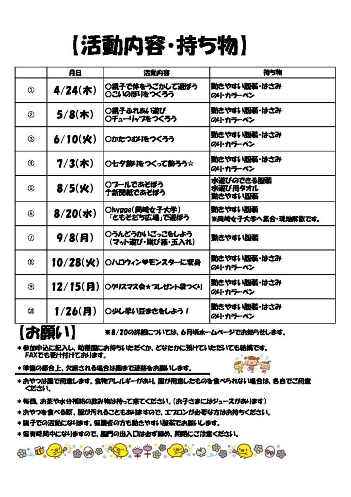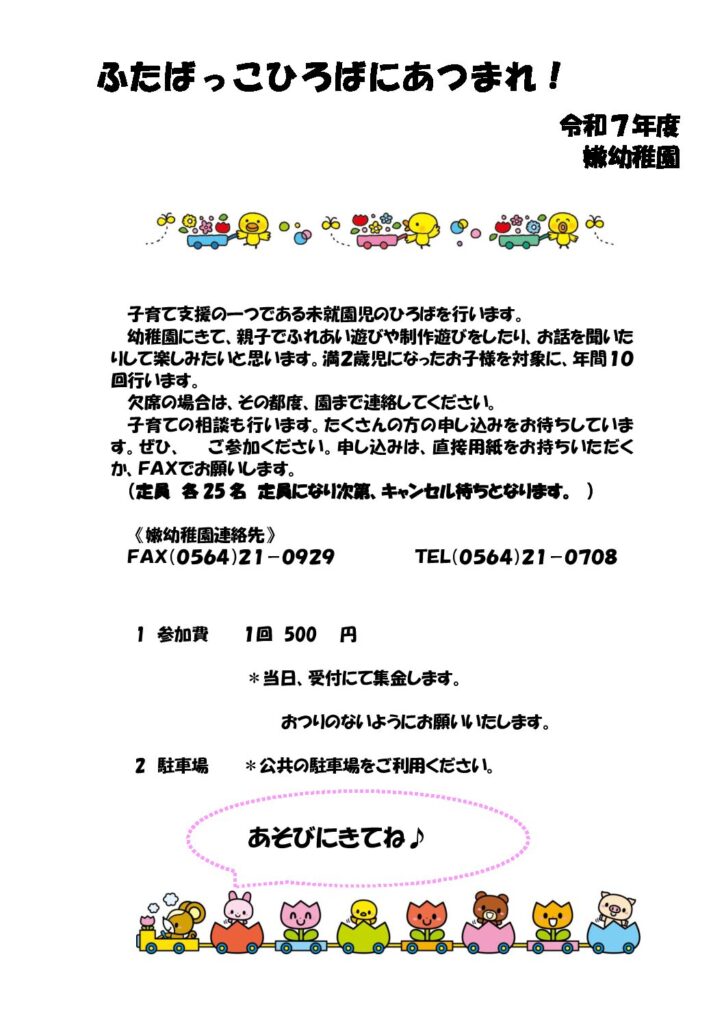 幼稚園にきて、親子でふれあい遊びや制作遊びをしたり、お話を聞いたりして楽しい時間を過ごします。満2歳時になったお子様を対象に年間10回行います。