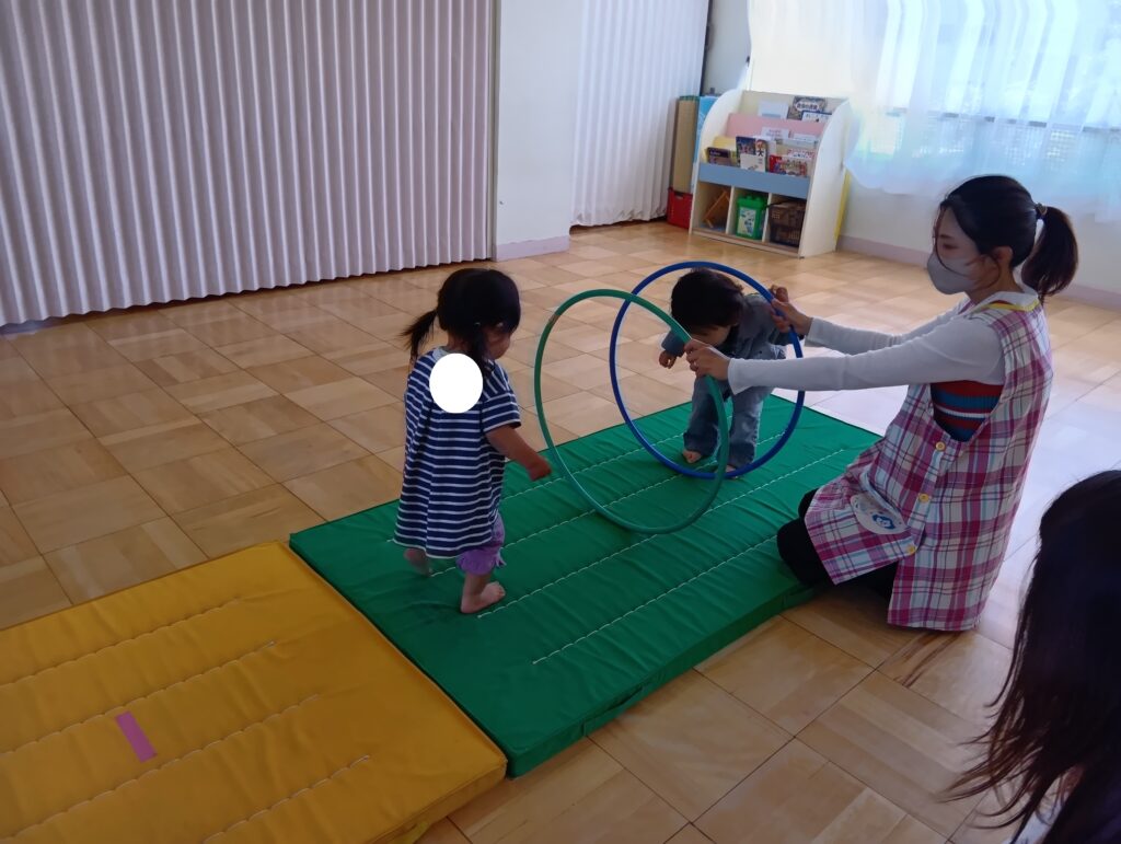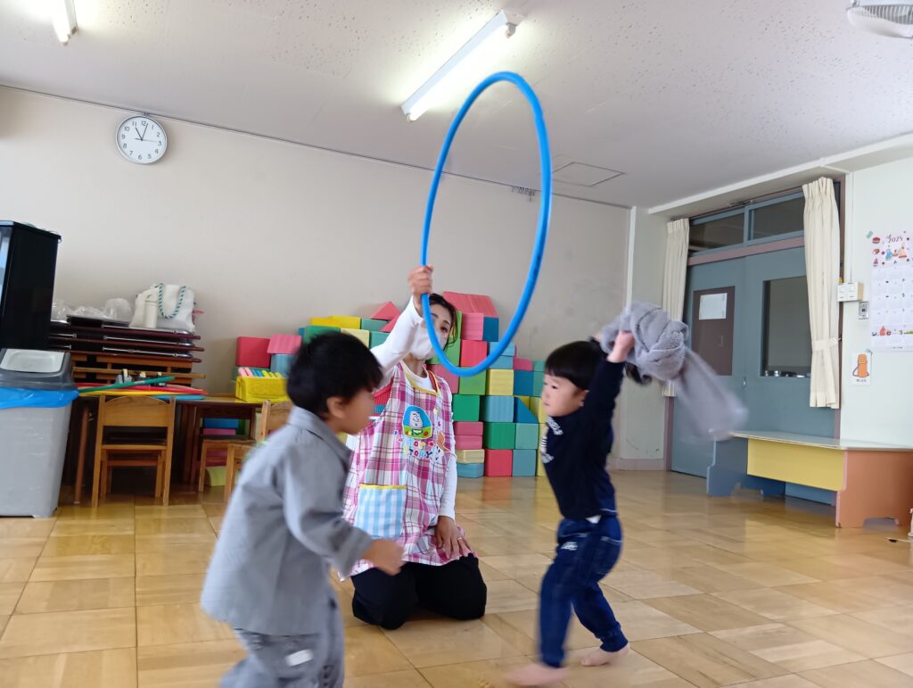 今日は、フラフープを使って電車ごっこやトンネルくぐり…🌟