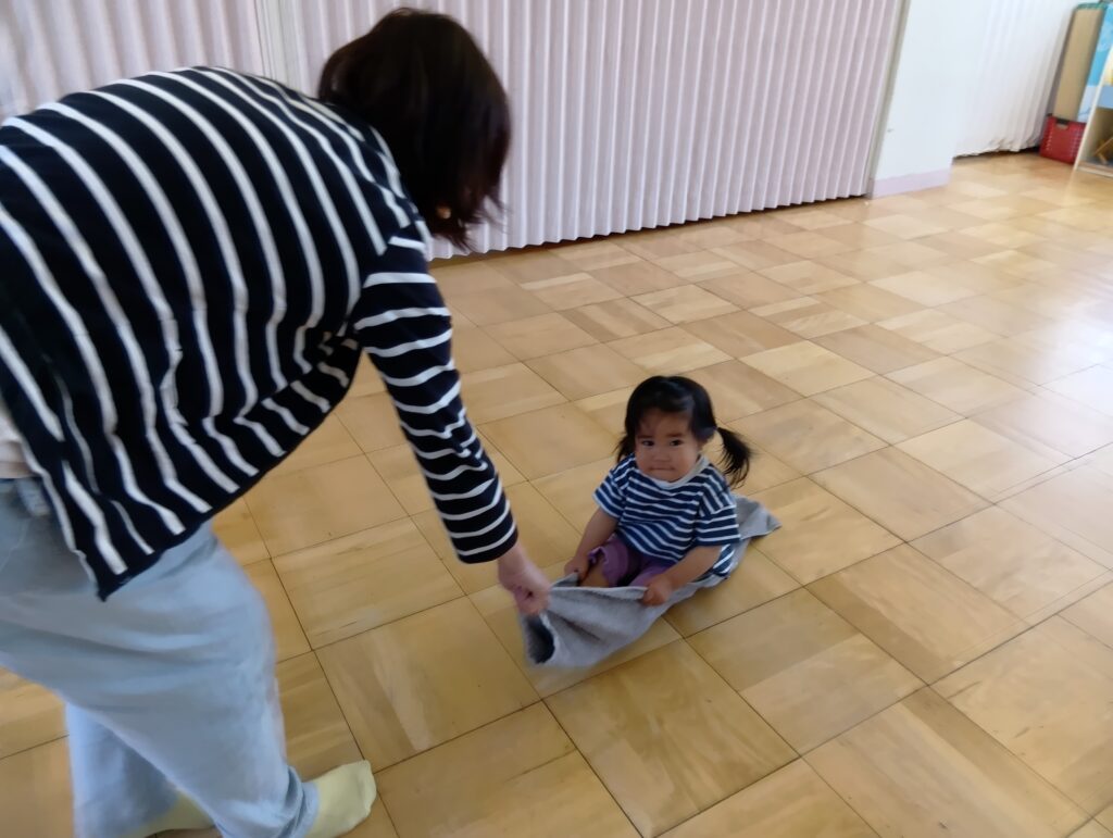 タオルを使って魔法のじゅうたんでお散歩🌳ママとタオルの引っ張り合いっこ💓など