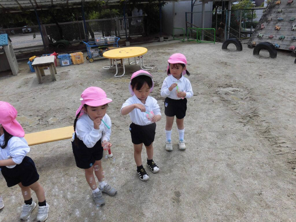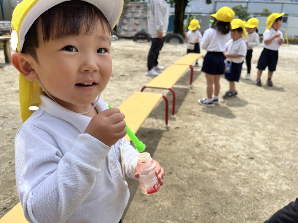 「高くとんだよ!」「きらきらしてきれいだね!」と、シャボン玉の面白さに気付き、夢中で何度も楽しむ姿がありました♡