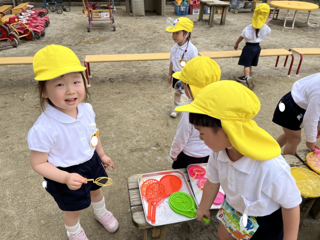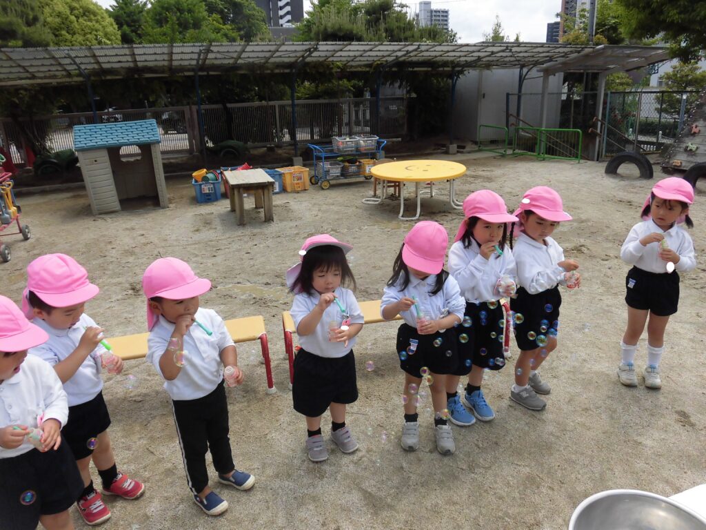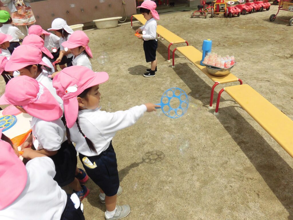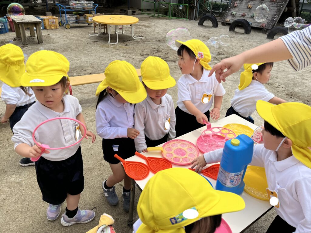 最後は大きな道具を使って思い切り楽しみました♪また一緒にシャボン玉で遊ぼうね♪