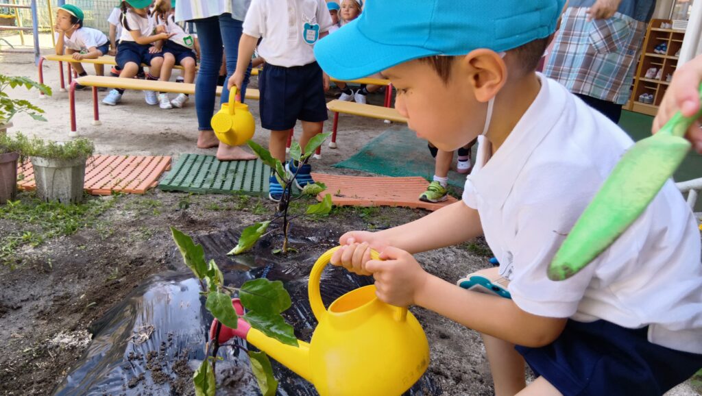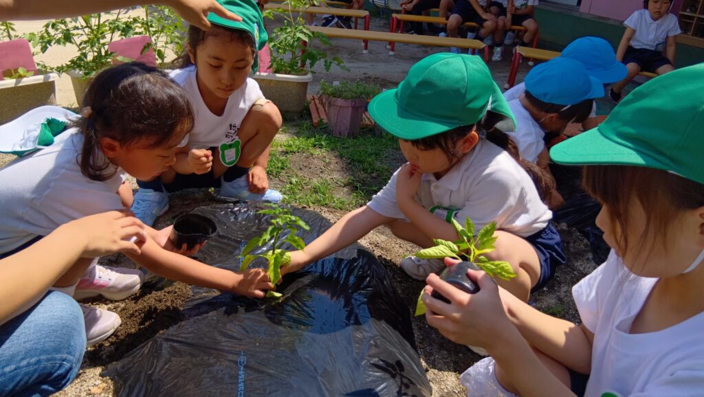 野菜の苗を植えました🍆(年長)