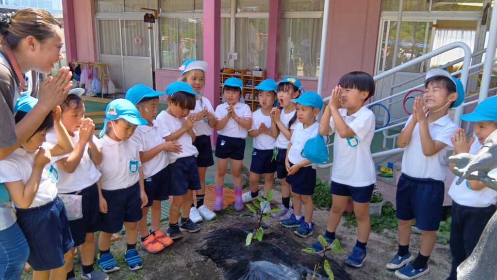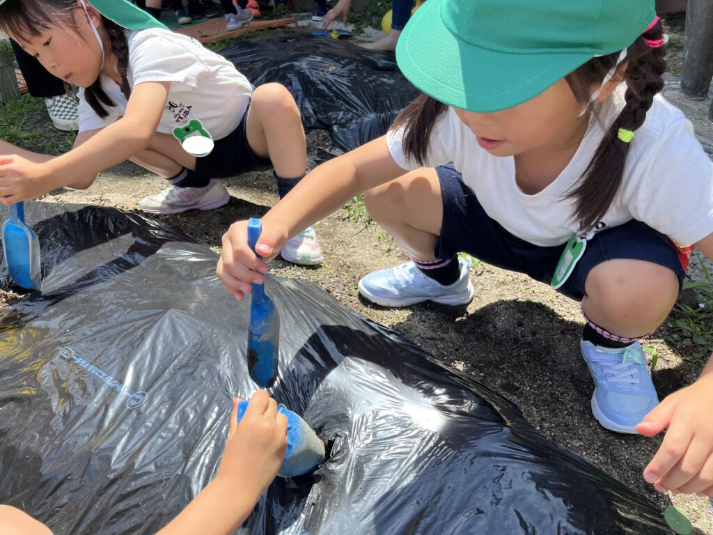 今日は、年長組で野菜の苗を植えました!ナスとピーマン!!「ピーマン食べられるよ☆」「ナス好き~💖」など期待の気持ちをもって取り組んでいました✨