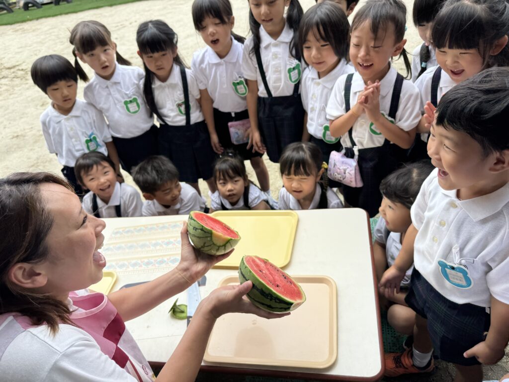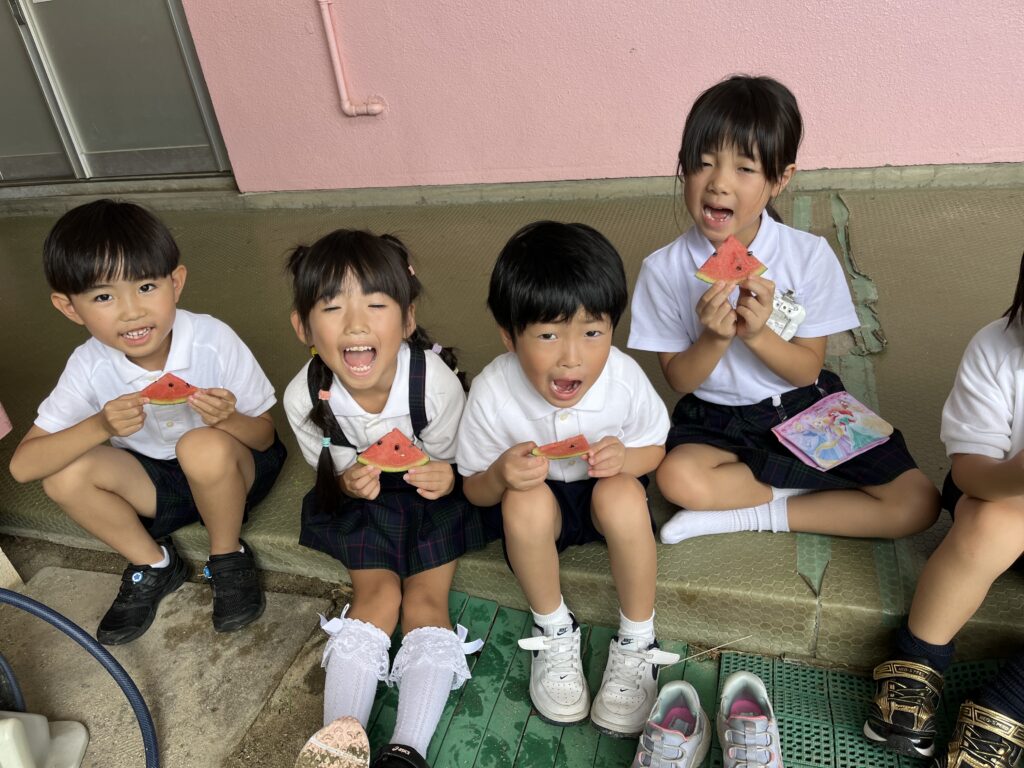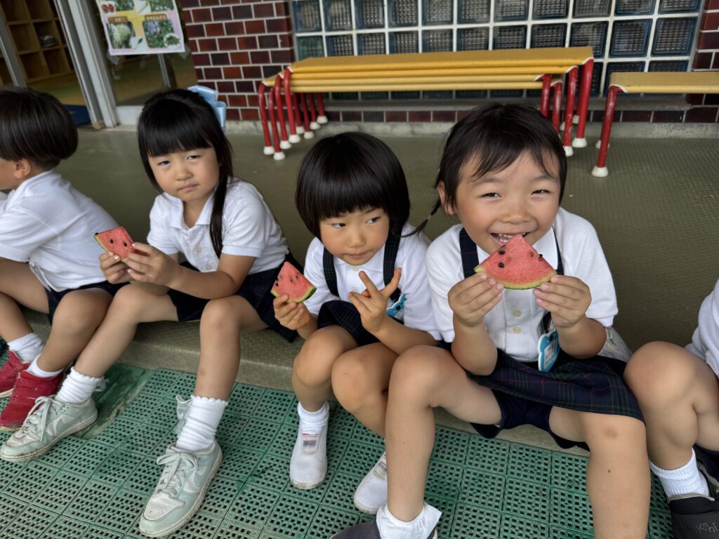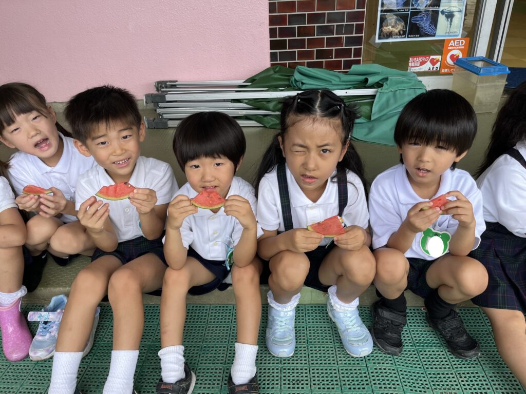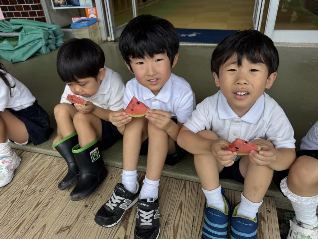 自分たちで育てたスイカの味は、甘くて、少しずつですがみんなで食べて満足感でいっぱいでした♪💕😍😍😍