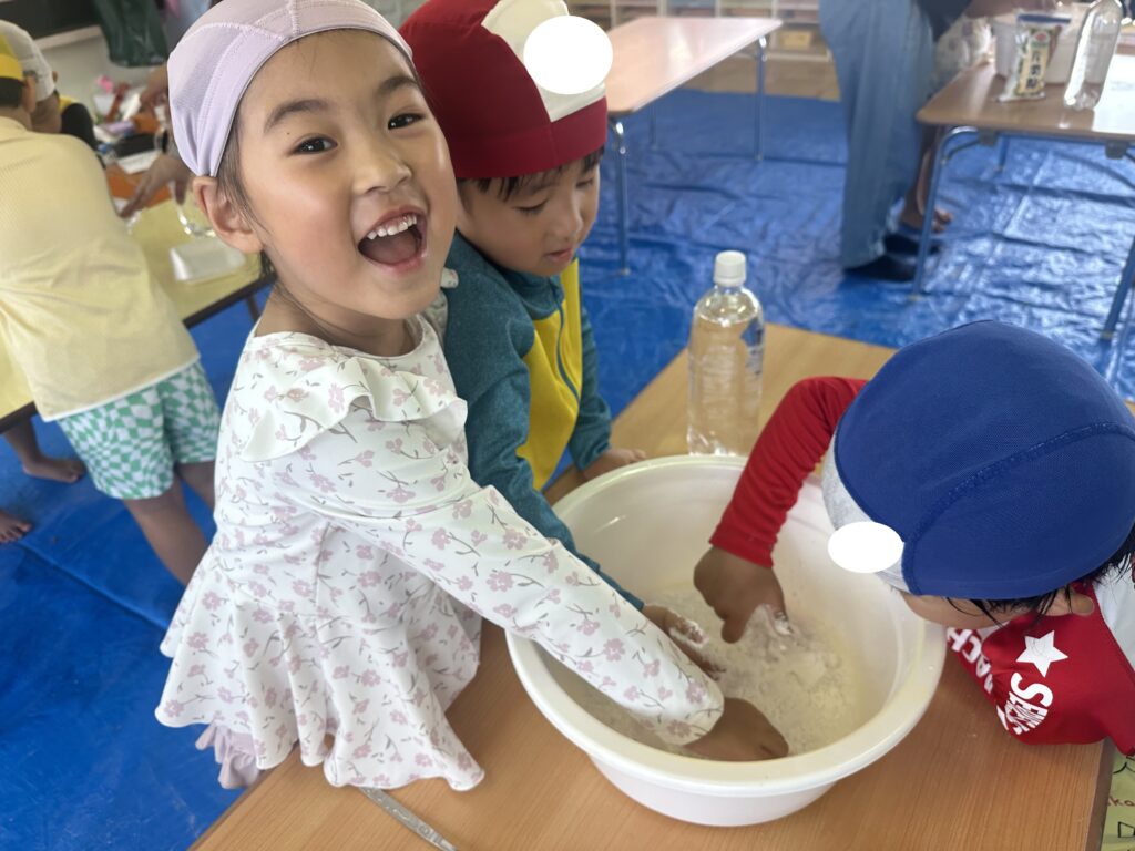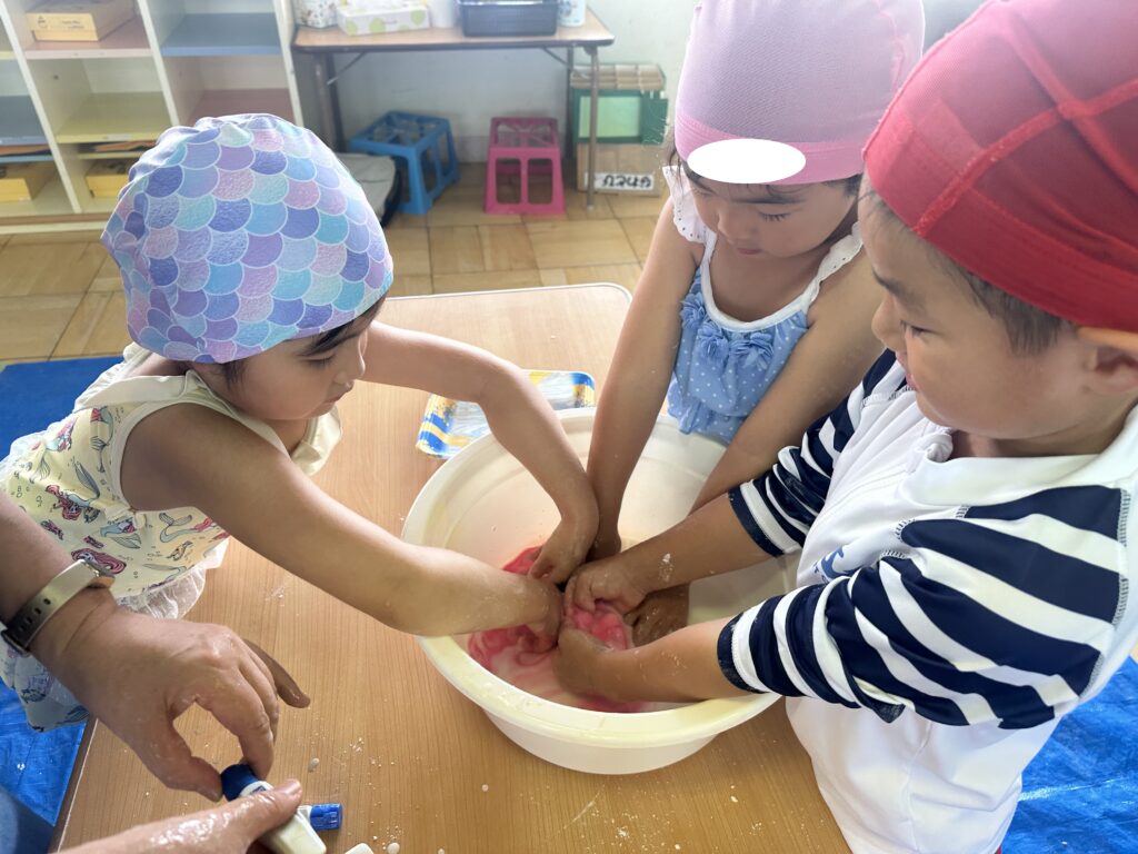 今日は、年中・年長のお友達で、ワークショップ『片栗粉スライム遊び』をしました!