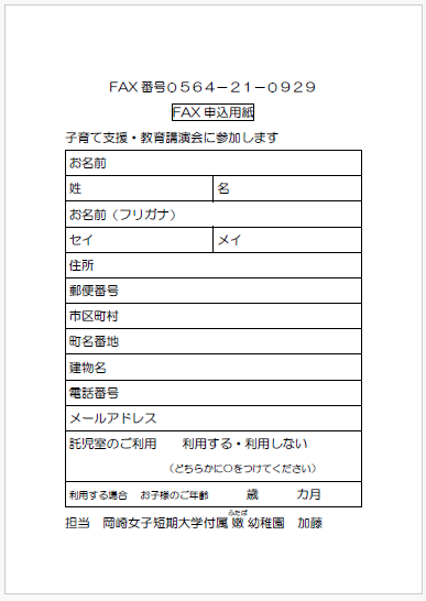 令和7年度 子育て支援・教育講演会 FAX申込書