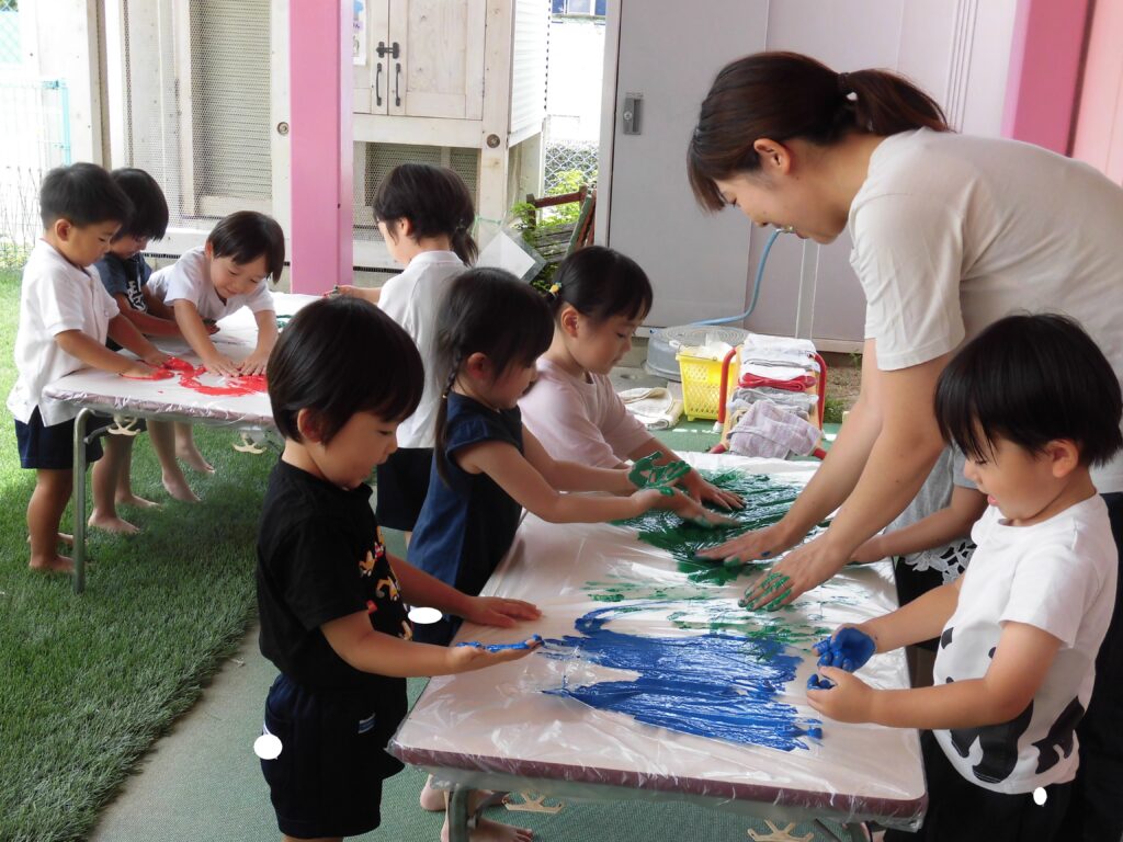 最後は手形をおして全員で素敵な模様を作ることができました♬2学期からもたくさんの楽しいことを一緒に経験していこうね♡