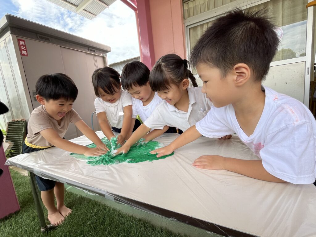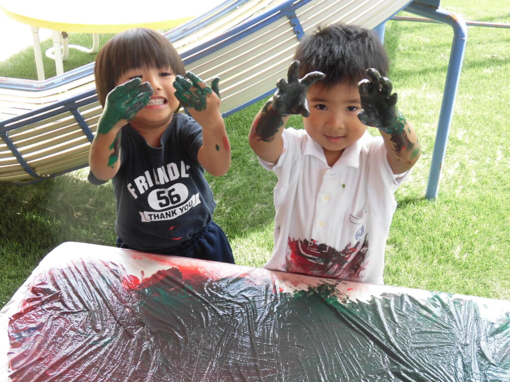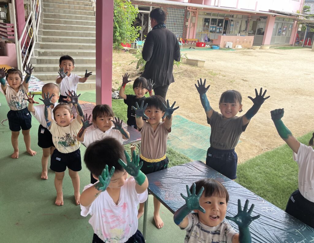今日は、年少組でフィンガーペインティングをして楽しみました♪