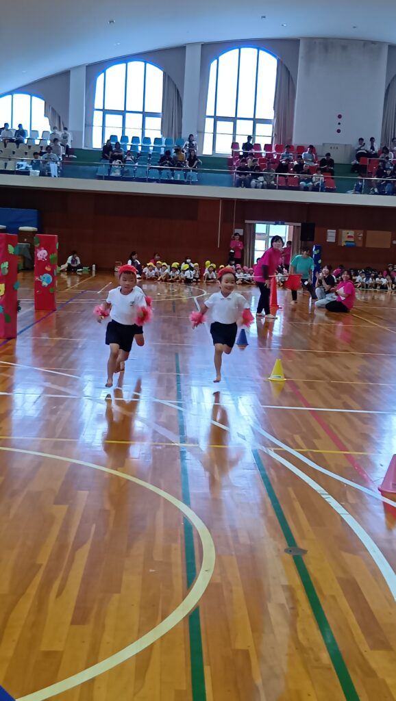 「頑張れ~!」と友達を応援する姿や一生懸命に走ったり、跳んだりする姿など最初は、できなかったことも何度も挑戦したり、回数を重ねたりするごとにできるようになってとても成長を感じました♡