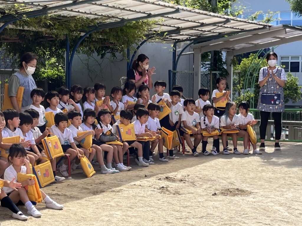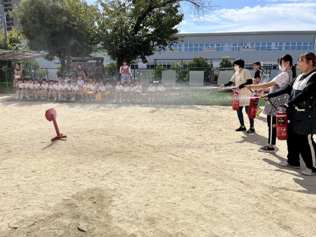 子どもたちは、先生たちが消火している姿を真剣に見ていました🌟