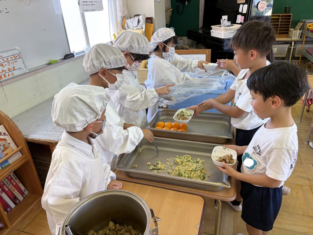 給食当番で配膳係が始まりました✨(年長)