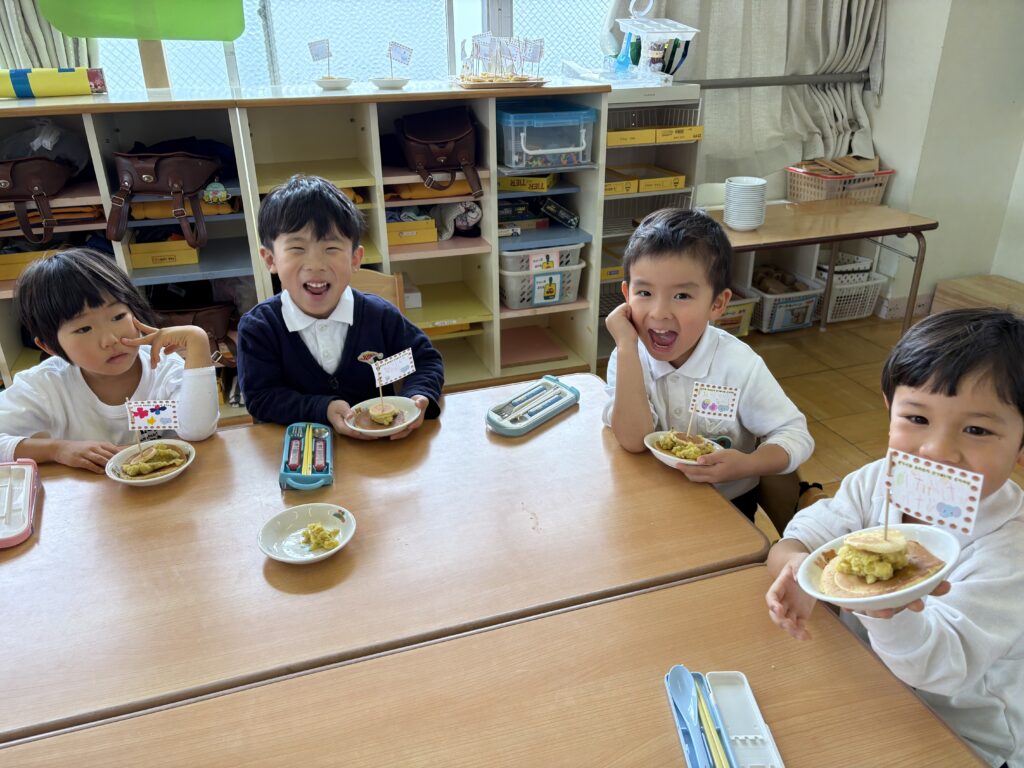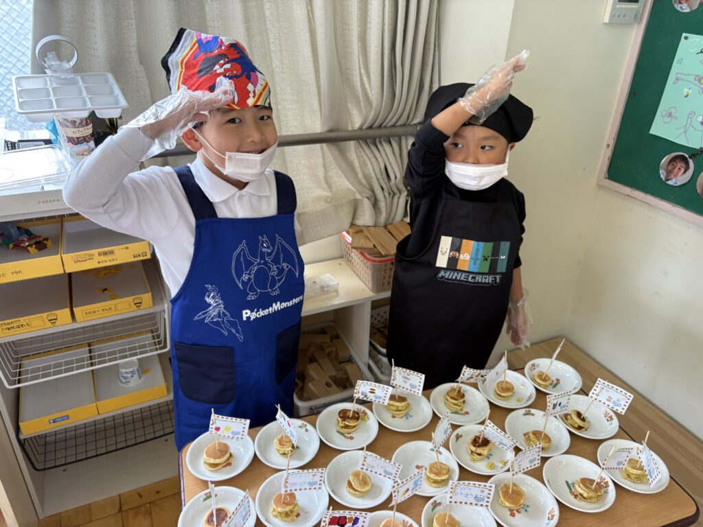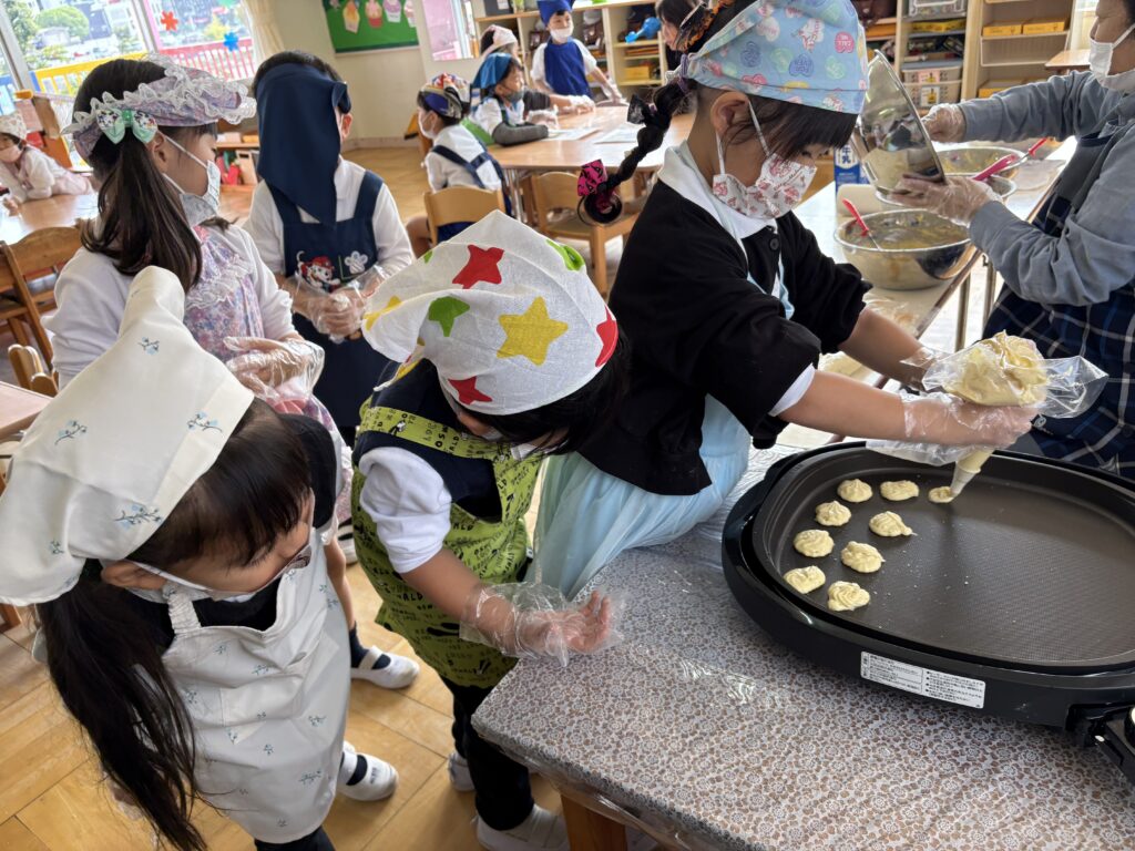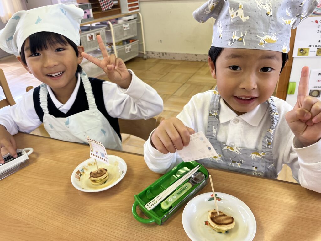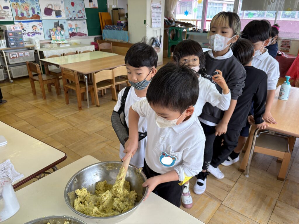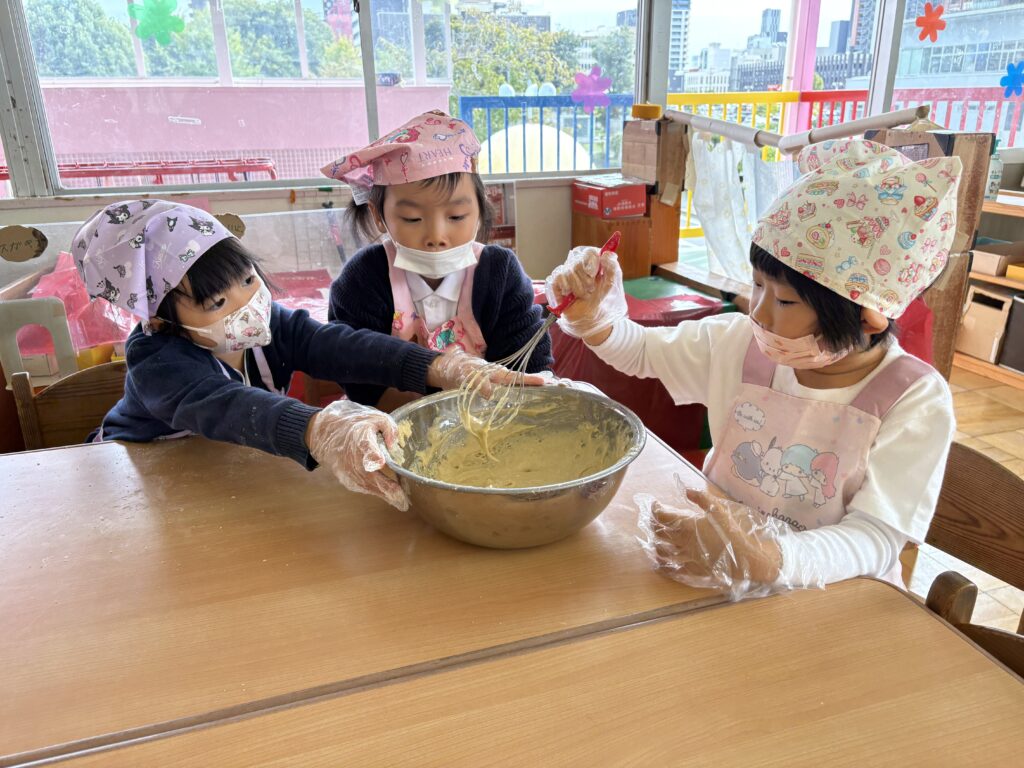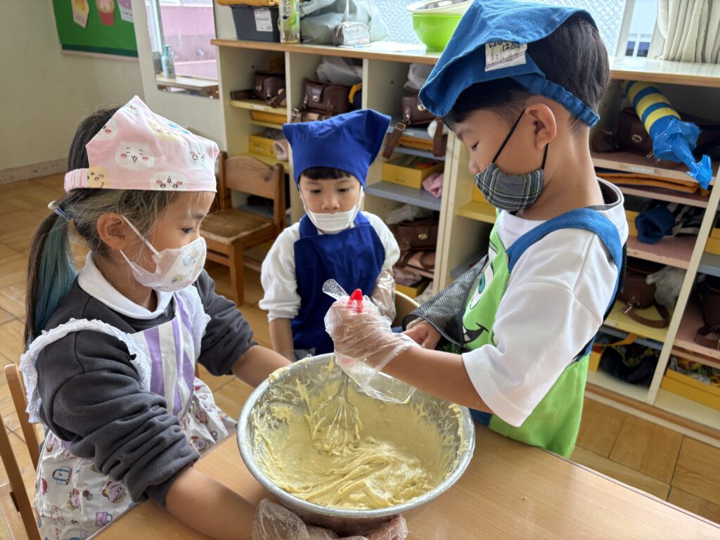 ぞう組は生地をみんなで混ぜたり、餡を生地で挟んで🚩をつけたりしました✨