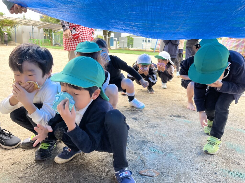 そして、火災の煙を吸わないように逃げる方法”ダック訓練”も行いました!