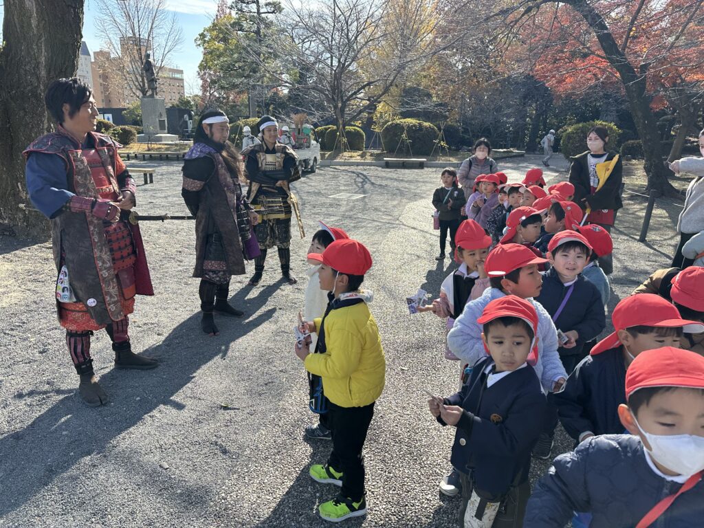 到着すると、武将隊の皆さんがお出迎え💕「何歳じゃ?」「どこの幼稚園じゃ?」と聞かれて、元気よく答える子どもたち😊また、からくり時計も時間ピッタリに見ることができて、嬉しい事ばかり✨