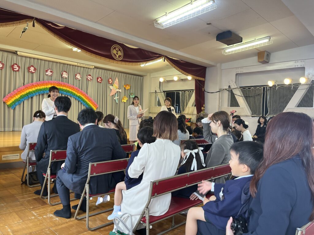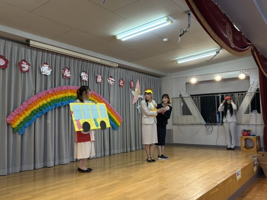入園式では、園長先生の話を聞いたり、先生たちの劇を観たりしました!名前を呼ばれたときは、手をあげたり返事をしたりと、かっこいい姿が見られました!
