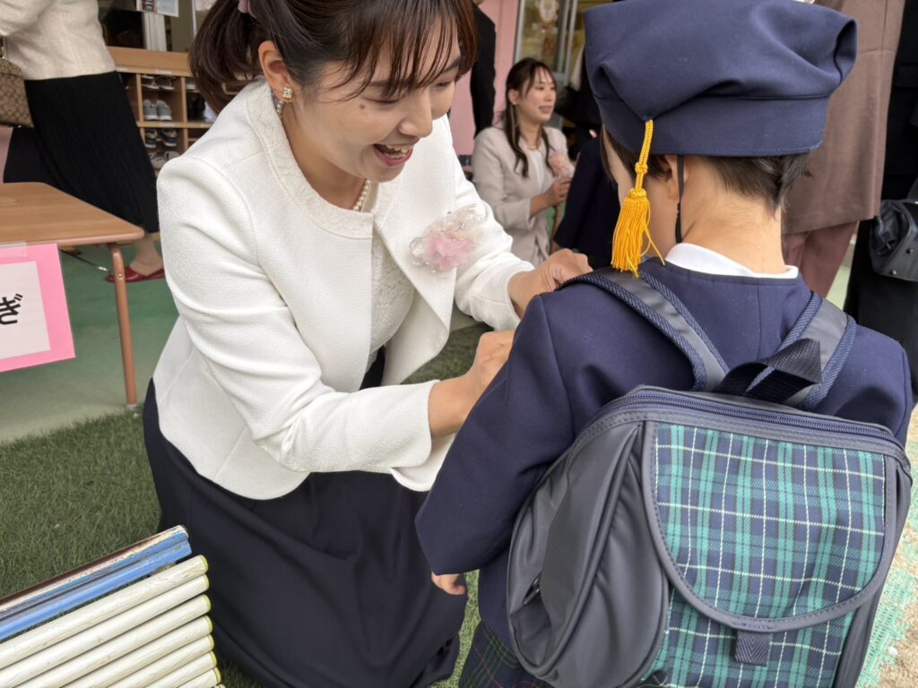 保護者の方と一緒にドキドキした表情で園門をくぐってきたお友達♡先生に名札を付けてもらって、嬉しそうな姿やちょっぴり恥ずかしがる姿が見られました♬