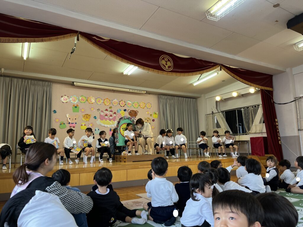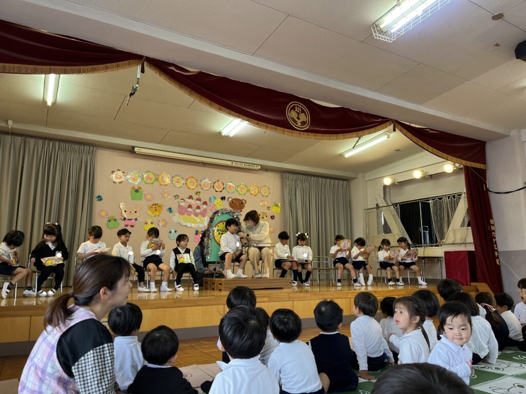 お楽しみでは、先生たちの大型紙芝居を楽しみました♬またお部屋でも紙芝居や絵本の世界を楽しもうね♡