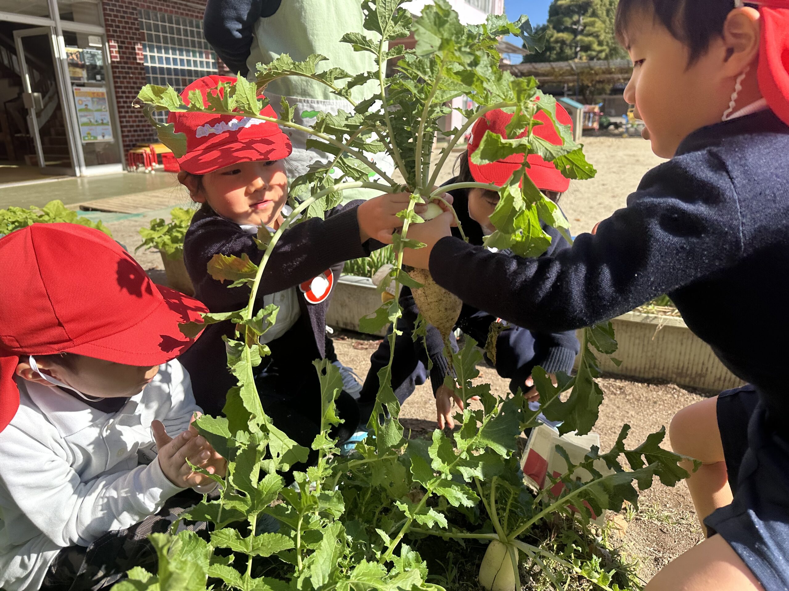 9月に植えた冬野菜がだんだん大きくなり、ついに大根が収穫の時を迎えました! 友達と協力して「この大根にしよう!」「せーの!」と力いっぱい大根を引き抜きました😊 長い大根、少しふっくらした大根、少し曲がった […]