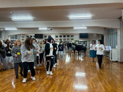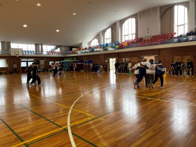 2日目は,オカタン名物のオカリンピックです。クラスで心を一つにして,たっぷりと身体を動かして頑張りました。教員と対決する場面では,幼児教育学科らしいアットホームなひと時もありました。