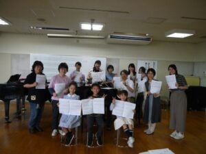この講座には、小学生の方から、セカンドライフを楽しまれている方まで、年齢層豊かな場となりました。だれもが知っている曲、輪唱で「夜が明けた」や、「ドレミの歌」「翼をください」を歌い、参加者のみなさんと楽しく交流出来ました。