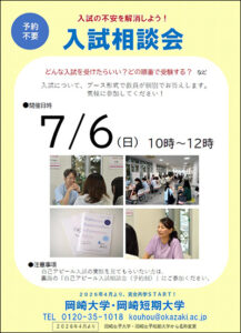7月6日(日)「入試相談会」と「自己アピール入試相談会」を開催します。