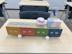 学生たちは身近にあるものを使い、工夫を凝らして動くおもちゃを作っていました!