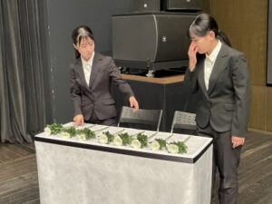 本学からは子ども教育学部北浦ゼミナールの4年生6名が参列し、誓いの言葉と典礼、献花の補助をさせていただきました。誓いの言葉は学生たちが考えたものです。以下に掲載しますのでぜひご一読ください。