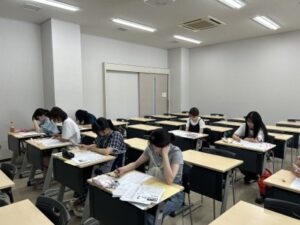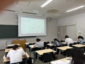 講座は1限・2限で行われ、皆熱心に取り組みました。最近の出題傾向や問題の解き方を知ったり、単語を効率良く覚える方法などを体験したりしました。また、過去問題を解き、自分で取得目標を決めました。