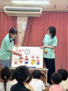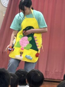 発表に向けて、保育教材の制作・企画・練習など困難もあり、課題も見つかりましたが、子どもたちの笑顔が学生の今までの努力を喜びに変えてくれました。