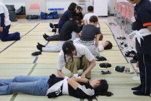初日は何となく受講していた学生も、姿勢がどんどん変わっていき、朝早くから実技の自主練をしている様子もみられました。最終日の実技シミュレーションでは、最適な処置ができるようそれぞれに試行錯誤している姿が印象的でした。