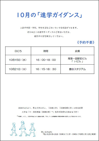 入試や学部・学科、学生生活などのいろいろな相談ができます。 ぜひお近くの進学ガイダンスにご参加いただき、疑問や不安を解消してください。