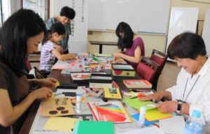 講座に参加された親子が帰る時に、「楽しかったね!!」と話している声を耳にしました。絵本作りの夢がそのまま親子の世界をさらに広げた半日でした。