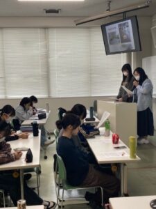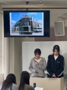 実習の事後指導では、それぞれの体験を発表し合い、自分の経験できなかった実習先の学びを共有します。