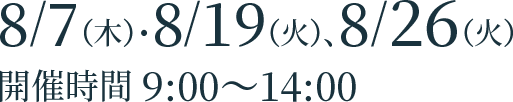 ●より多くの方にご参加いただきたいため、いずれか1日のみ参加をお願いします。また、保護者・付添の方のご参加はご遠慮ください。