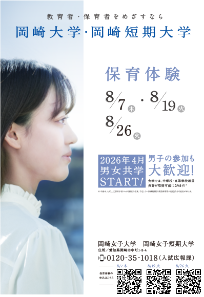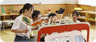 本学の付属園「たかねこども園」(豊田市)で、子どもたちとの触れあい(保育体験)と園の見学を行います。「子どもと関わるのが初めて」という方も、事前にレクチャーがあるので安心です。