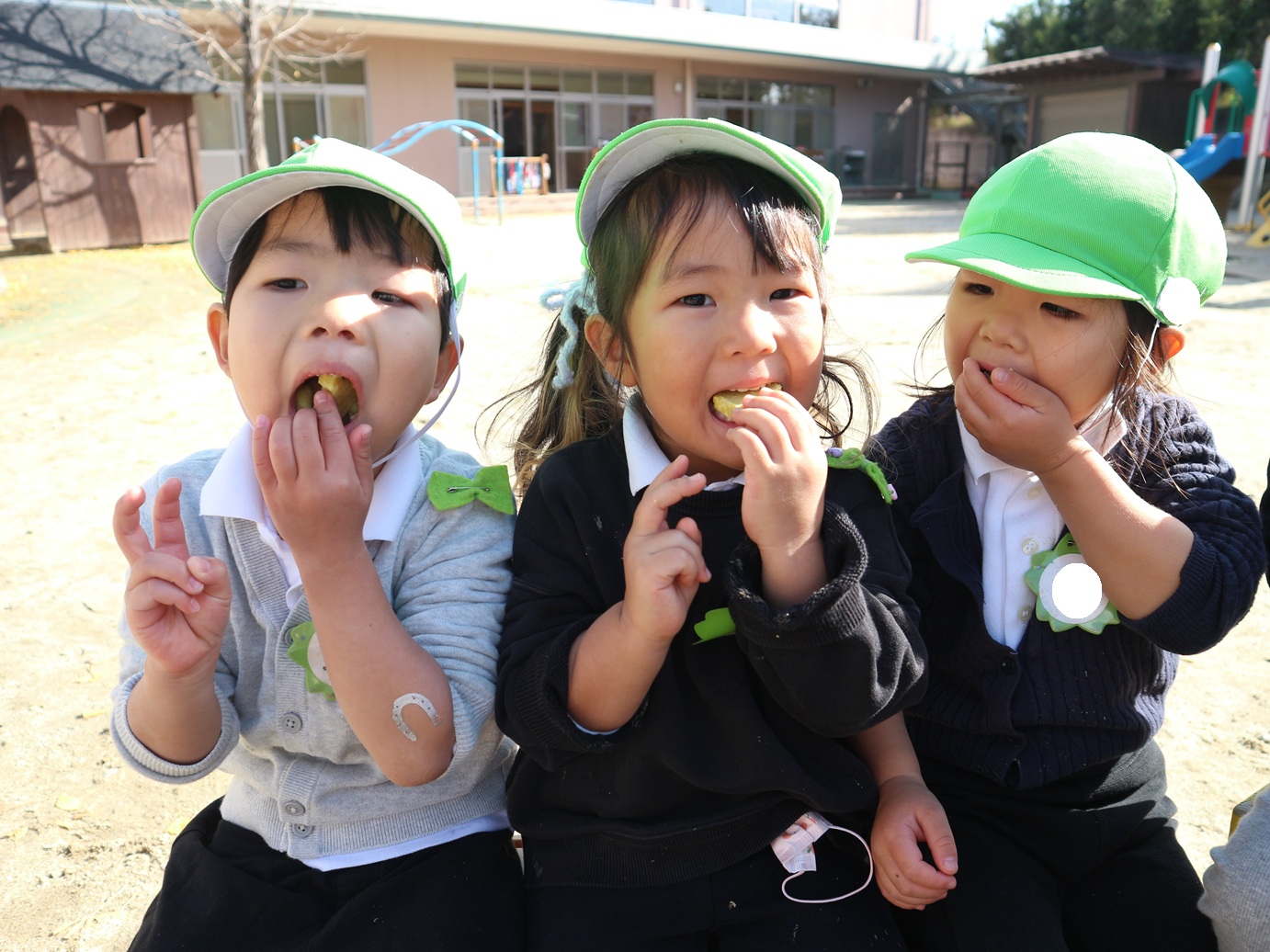 園庭で遊んでいると、職員室の先生が「おいもをどうぞ!」とふかし芋を持ってきてくれました。11月の初めに幼稚園で収穫したさつま芋で、てんぷら屋さんをした時に、少し残しておいたお芋です。 早速、たんぽぽ組におすそ分け。たんぽ […]