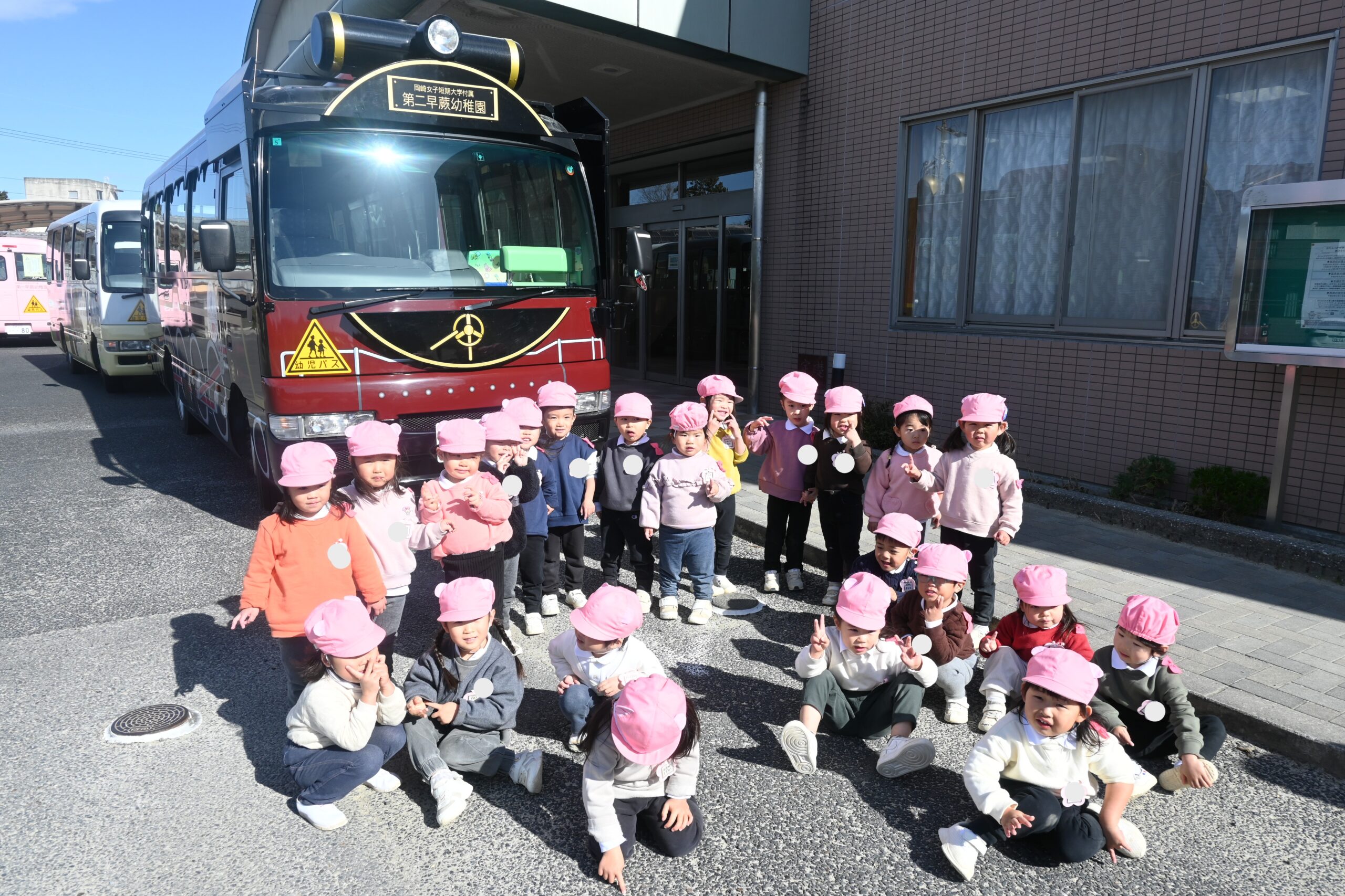 ポッポー!「汽車バス出発進行!」満3歳児組さん、良かったね!
