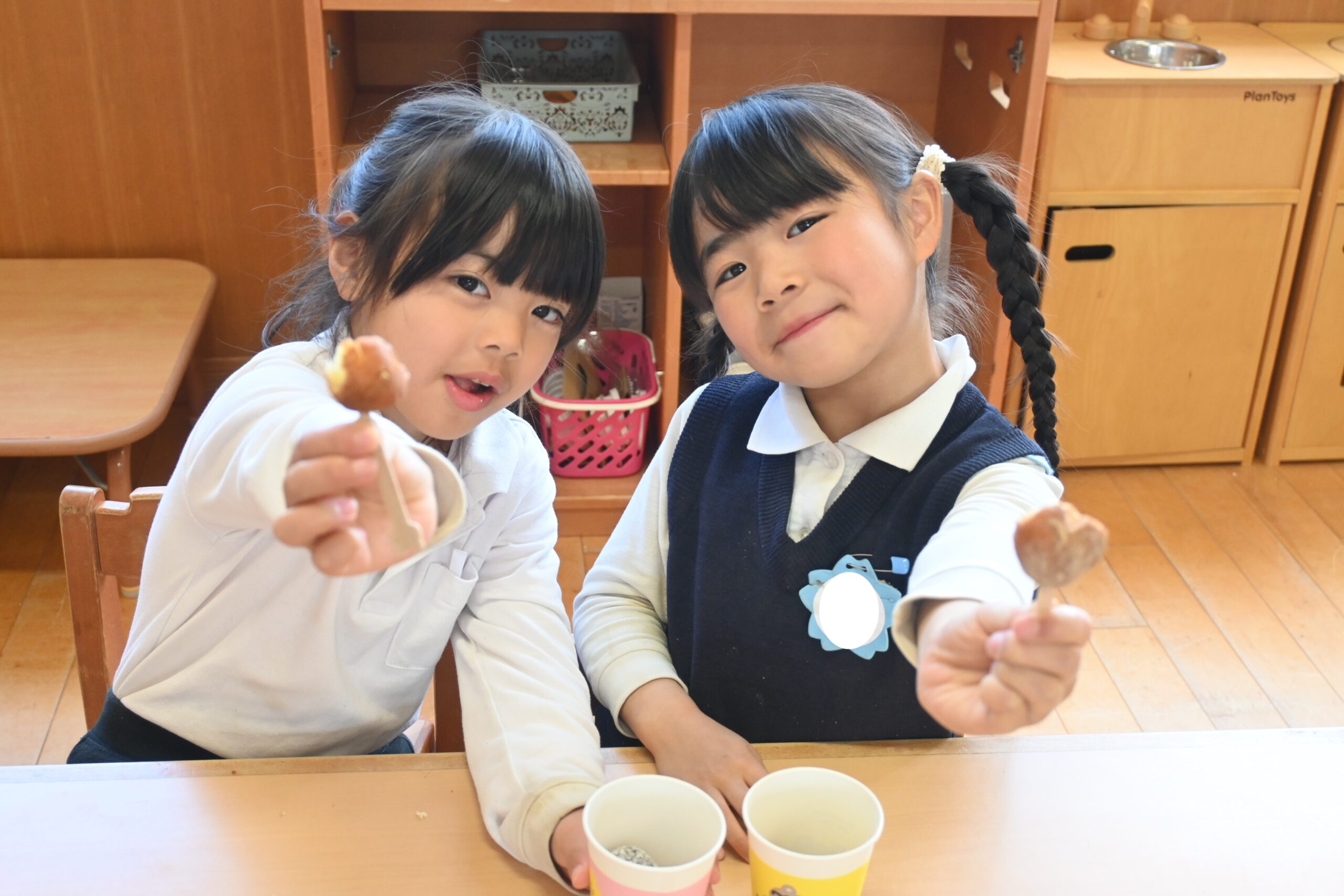 今日は、年少組と年中組がお楽しみ給食を食べました♪ ロールパンにハンバーグを挟んだり、ホイップとバナナを入れてフルーツサンドにしたりと、自分だけのサンドイッチを作って美味しく食べました! 仲良しの友達と一緒に食べて笑顔 […]