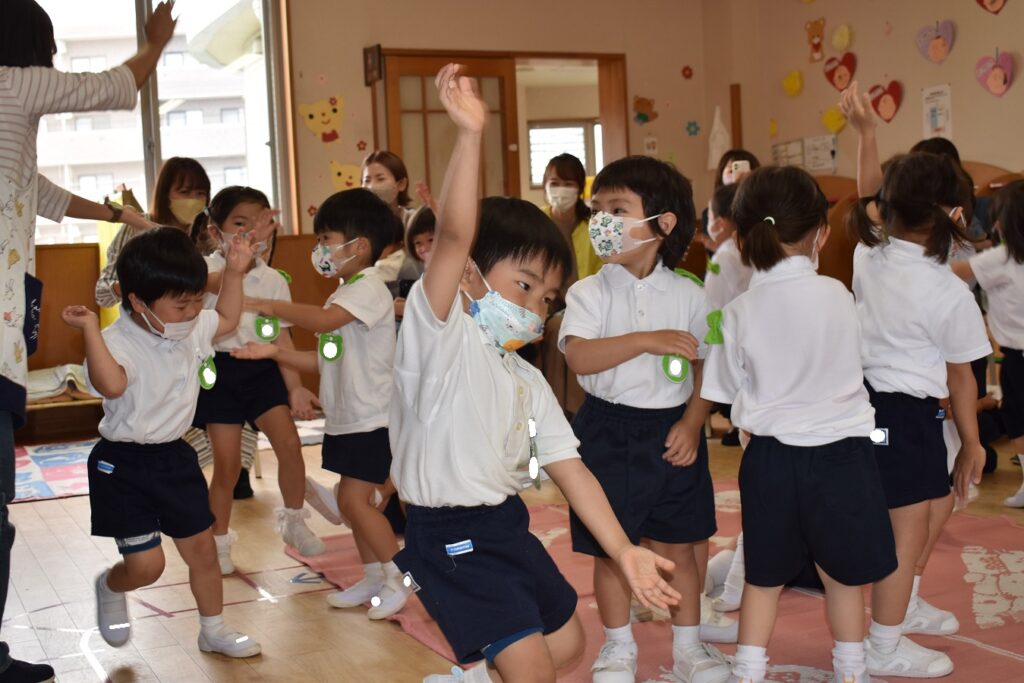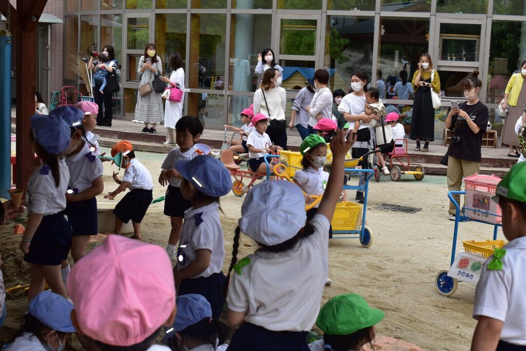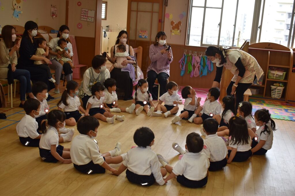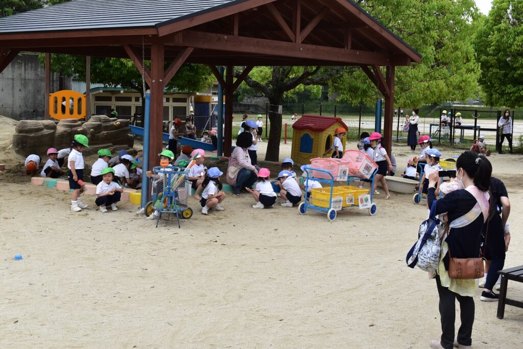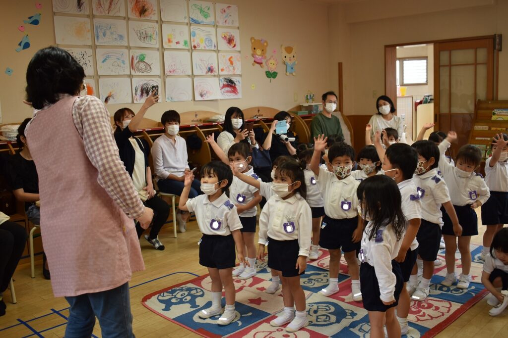 コロナウイルス感染防止のため、保育参観を2日間に分けて行っています。