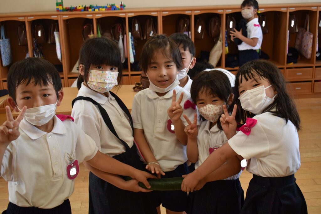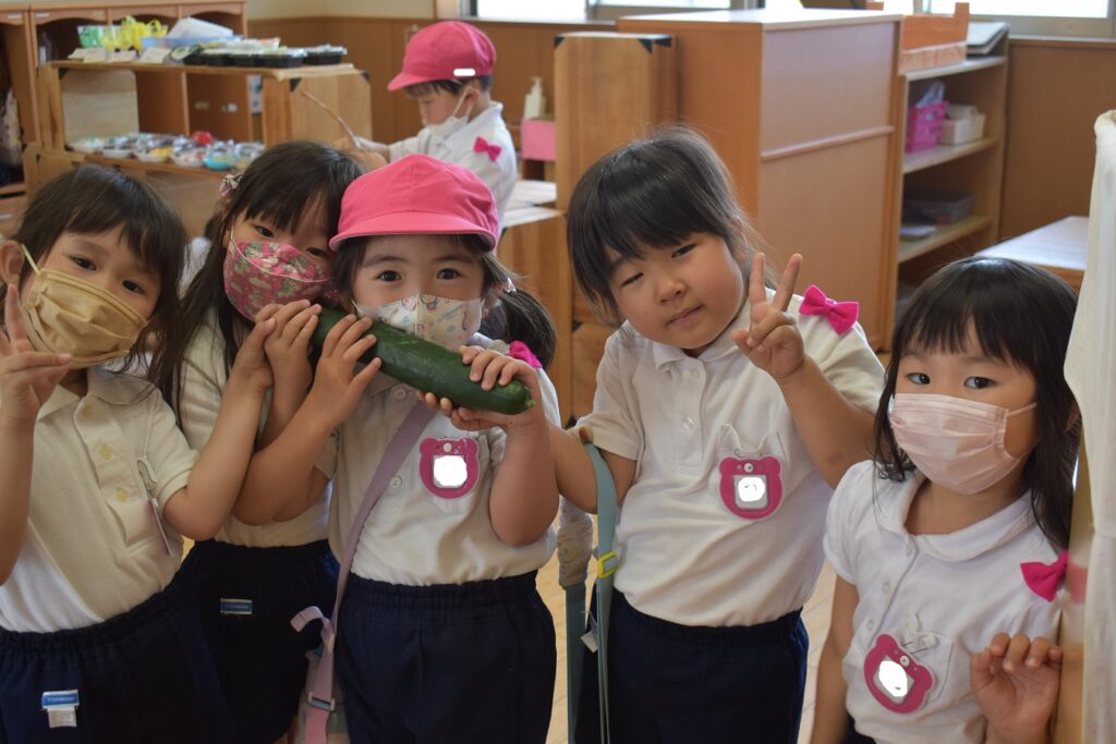 さくら組の子どもたちが初めて収穫したきゅうりは、とっても大きなスペシャルきゅうり♪♪