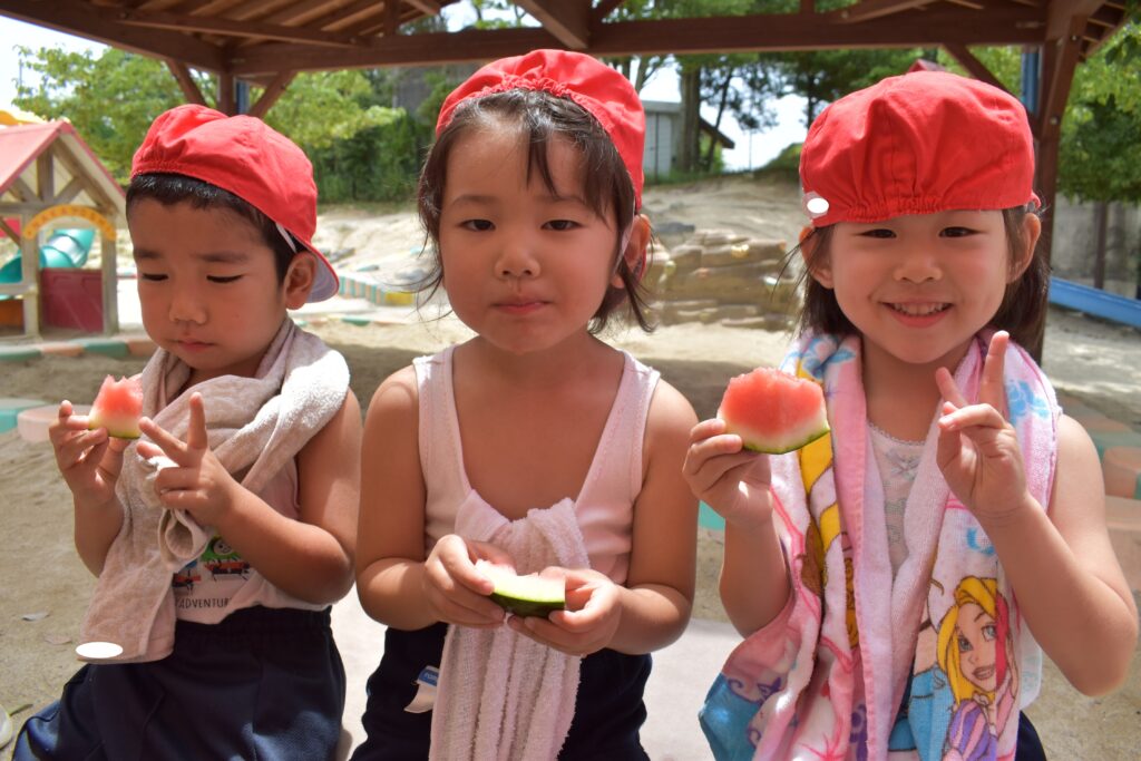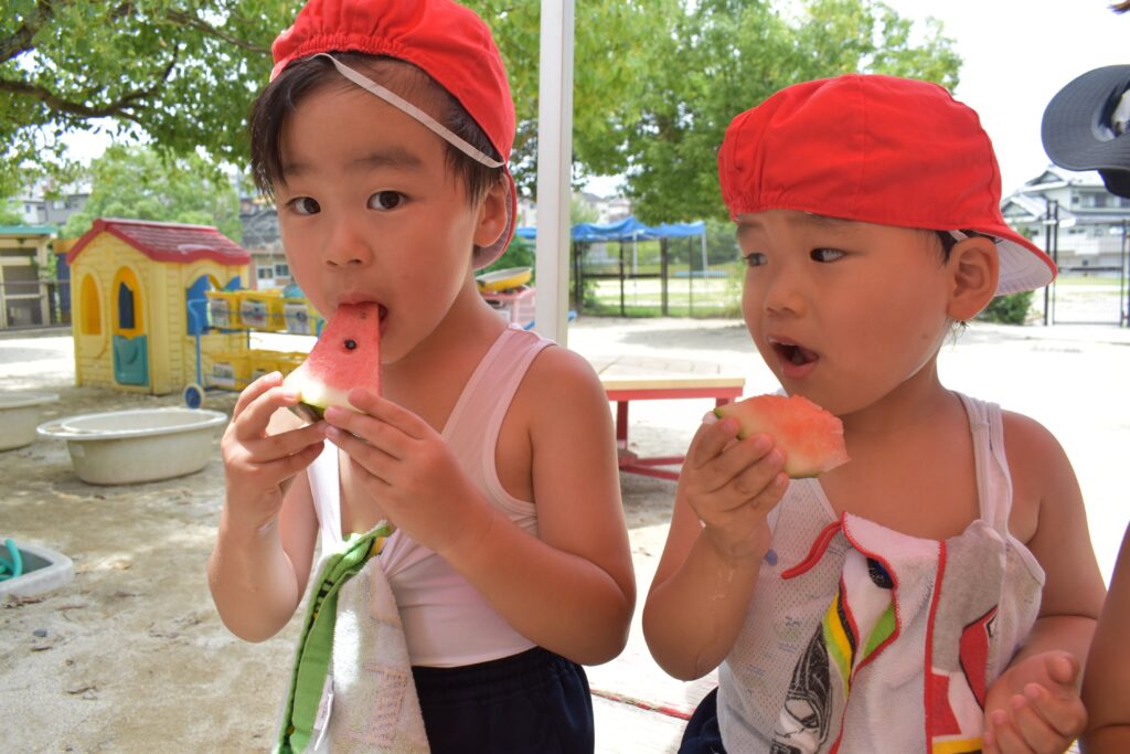 子どもたちがとっても楽しみにしていたすいかを食べました!!