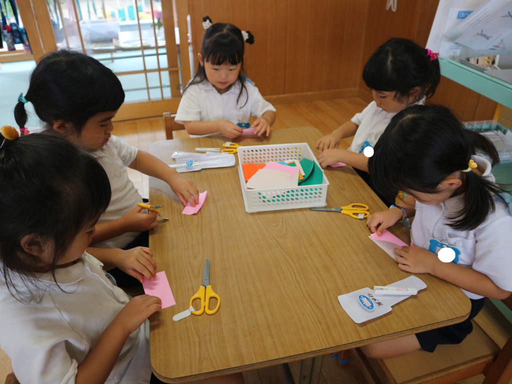 あと少しで七夕ということで、今日は保育室で七夕飾りを作りました。