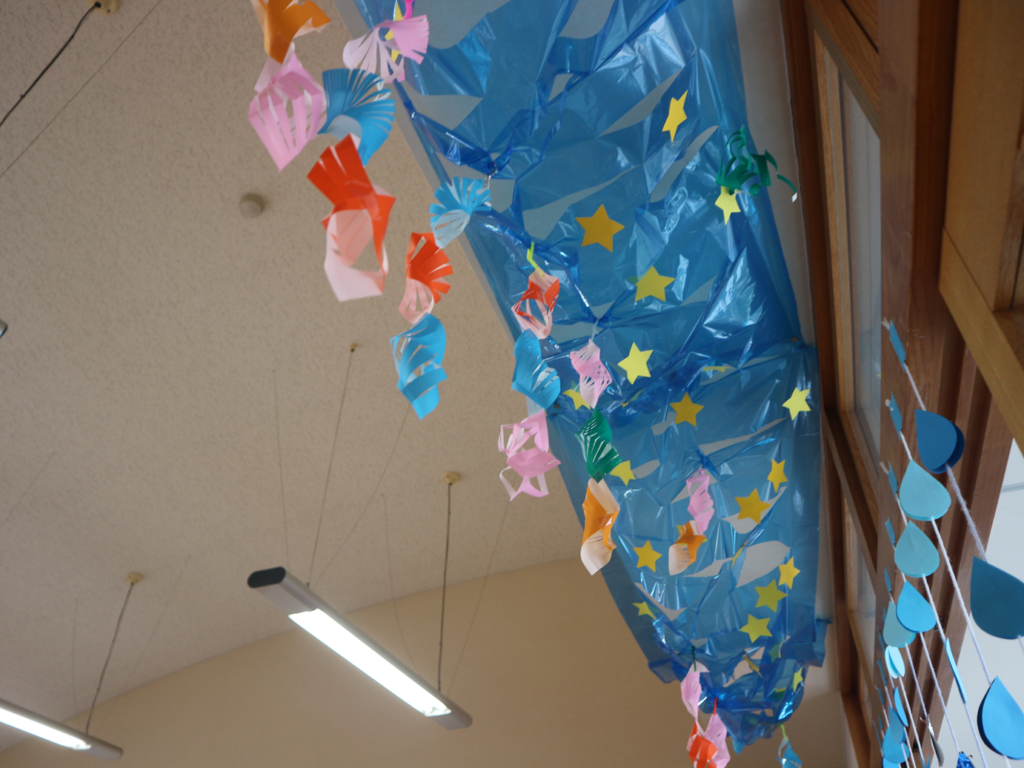 完成した天の川は保育室の天井に飾りました☆7月7日晴れて天の川が見れますように!