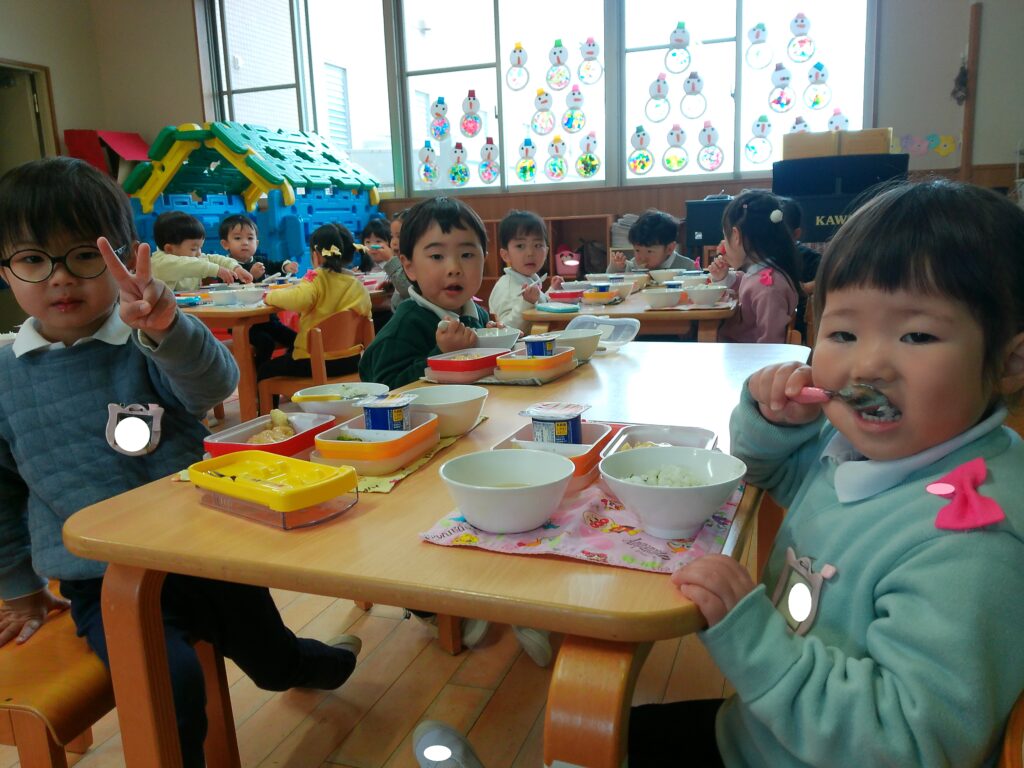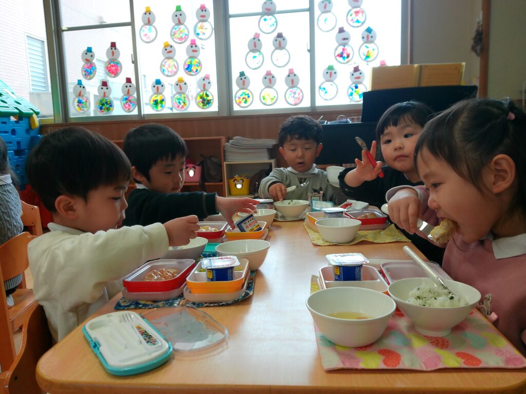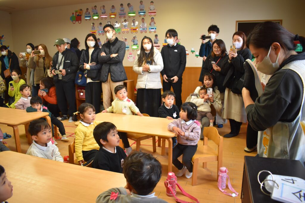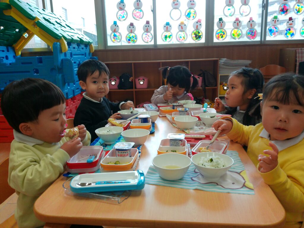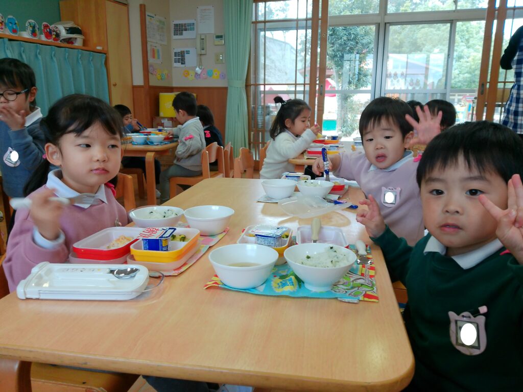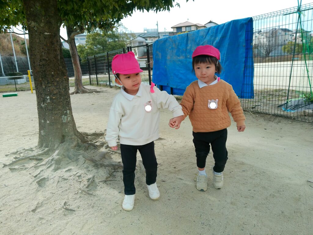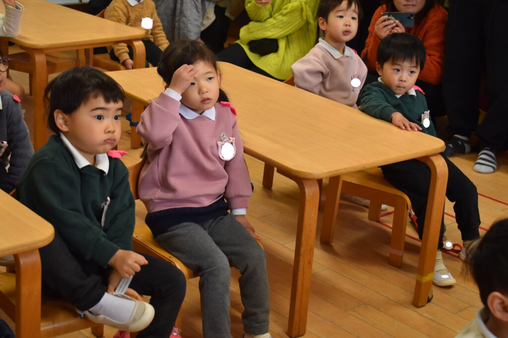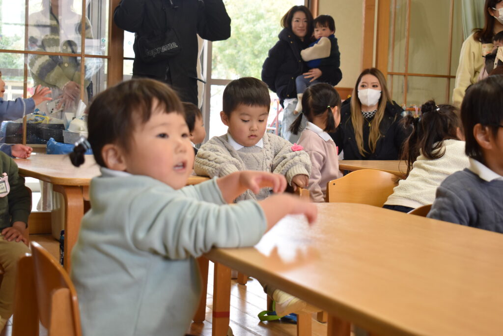 砂場や、三輪車、しっぽ取りなどの日常で楽しんで遊んでいる遊びの様子や、片付け等の日常生活の様子や、保育室で歌を歌ったり、一人一人返事をしたりしました。