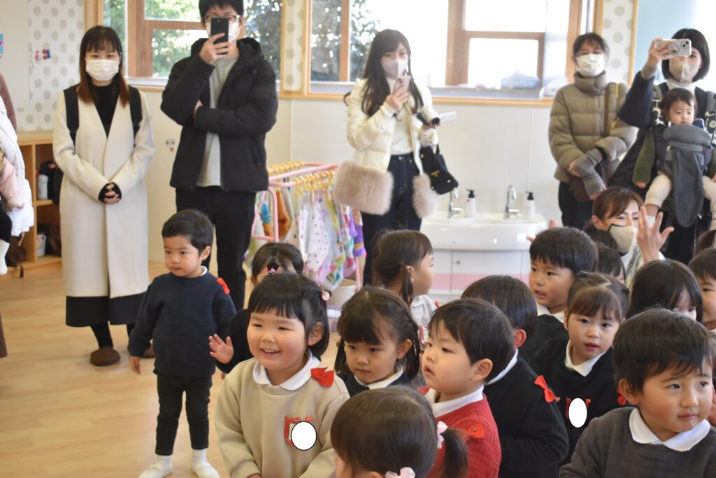 お部屋では歌を歌ったりジャンボリーミッキーを踊りましたが、いつもよりちょっぴり緊張気味のいちご組さんでした。本日は保育参観に来て頂きありがとうございました!